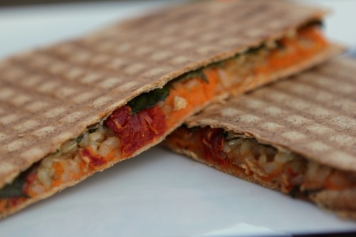 10. When the bottom has browned, remove from the pan and cut into triangles with a pizza wheel or knife.